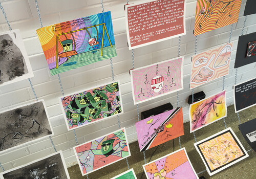Although not part of the Drawing and Printmaking cohort, I would be remiss not to mention Seth Searle’s Tiles and Trifle Bowl (2020) and Grace watching while I pour her water (2020). Both are extraordinary in their ability to discern the ordinary as exciting and dramatic opportunities for art. This rumination on the mundane or ordinary is something fitting of the year that was. As viewer, we become aware of the mild beauty of each situation we find ourselves in, and how, in fact, each moment has a ritualistic and emotive aspect to it.