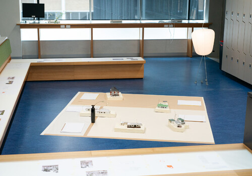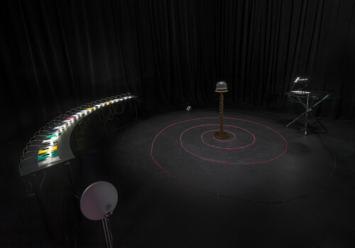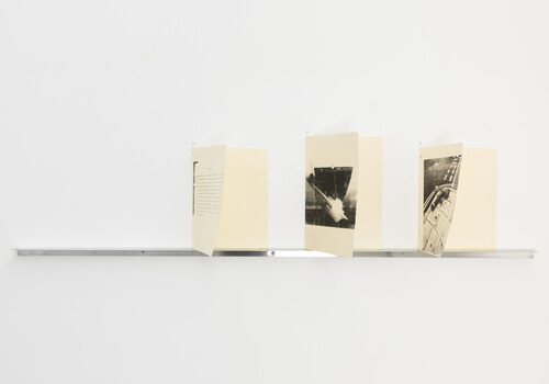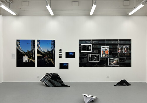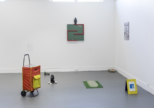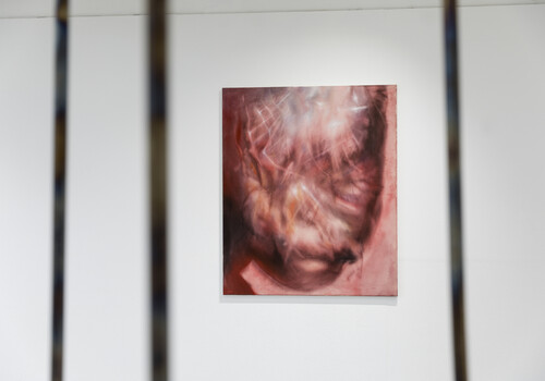 To begin with the grizzly bear: an animal associated with violence and hunting, as a toy, the bear also acts as a symbol of childhood nostalgia. We all nurture and love our precious toys while growing up. “To bear” is to support, to carry, to hold oneself up. But it is also to endure and to suffer, to experience a pain, to bear a tragic loss. Tracing its perimeter with our footsteps, we are careful not to wake the beast that lies peacefully at the centre of the space. Initially, the animal appears almost comic in its unexpected placement in the Honours corridor, but as we move our gaze upward, we are met with the startling presence of a sculpted firearm. Sammy-Jo Lang-Waite’s sculpture Gunny (2023) sits like a trophy, proudly mounted to the wall and positioned above eye level as though overlooking its prize. The fortuitous pairing of these objects suggests a narrative of hunt and prey: the bear’s momentary rest is now endless.