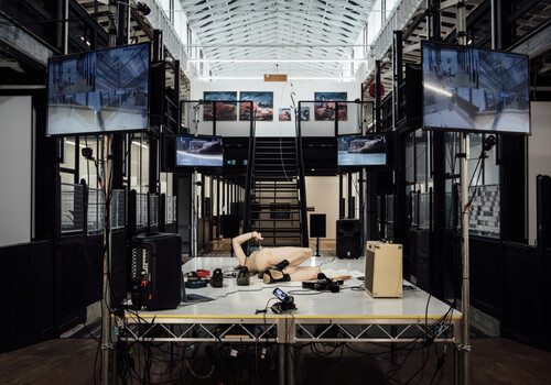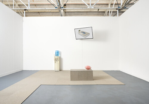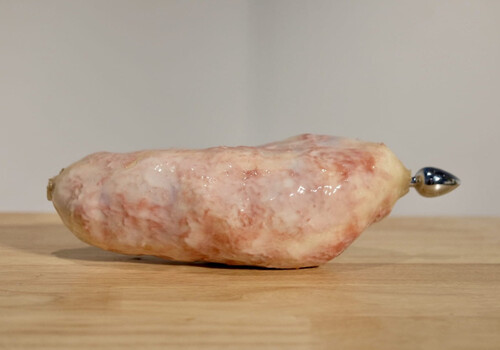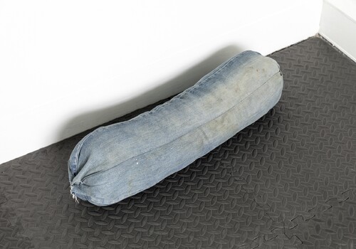 Nestled upon the fur of the bear’s hind leg lies a solitary white feather. I can’t make out if its presence is intentional or not. I don’t remember seeing it on the night of the opening. It’s a new addition, small but nonetheless captivating. The feather draws us to the other component of Fitz-Gerald’s work located metres away, separated by the work of another student. There lie the remnants of a performance, in which the artist slowly descended from the stairs, holding a replica of herself cast in resin and foam. Placing it on the floor of the room, she embraced it with the warmth of her own body in a moving act of self-love and care.