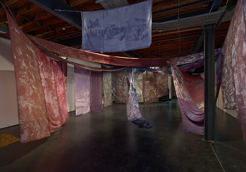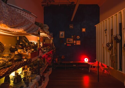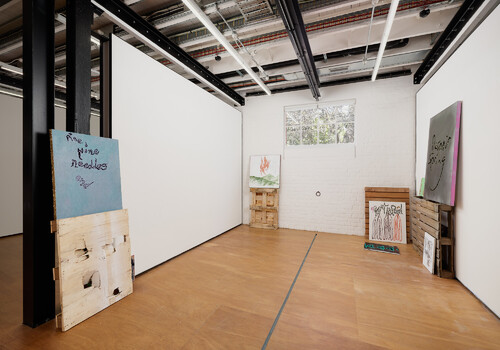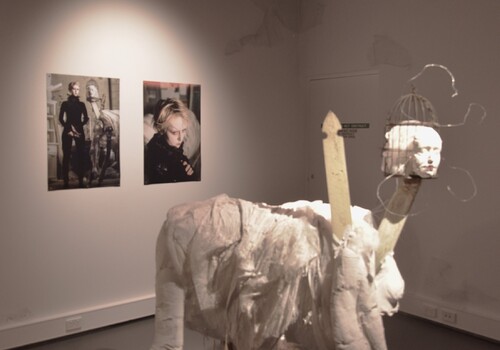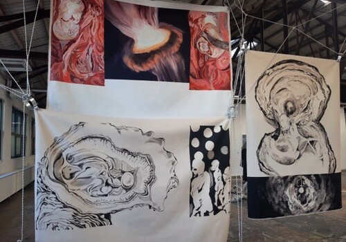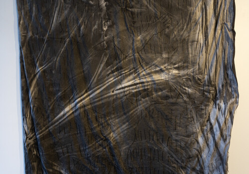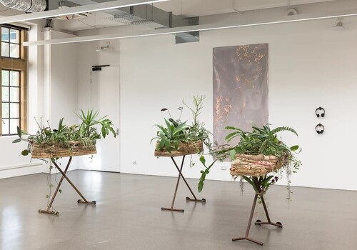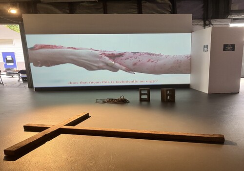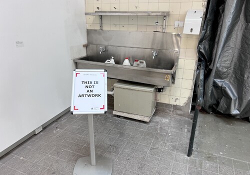 Take, for instance, the official NAS-branded bollard sign placed in front of a washing station. In the anything-goes ambience of the grad show, chances are this casual grouping of plastic jugs in a utility sink might be assumed to be a sculptural piece––as I initially thought. “THIS IS NOT AN ARTWORK,” the sign declares. It takes me a moment to realise that the artwork here is, in fact, the sign itself. Artist Nikki Poulos playfully engages with art’s capacity to expand traditional boundaries, involving not only unconventional artistic materials but also its surroundings. Poulos’s work moves everyday objects and scenes into an ambiguous space between art and non-art. Through a statement that seeks to delimit artistic interpretation, this cleverly staged work appears to compete with the art institution’s attempts to do the same.