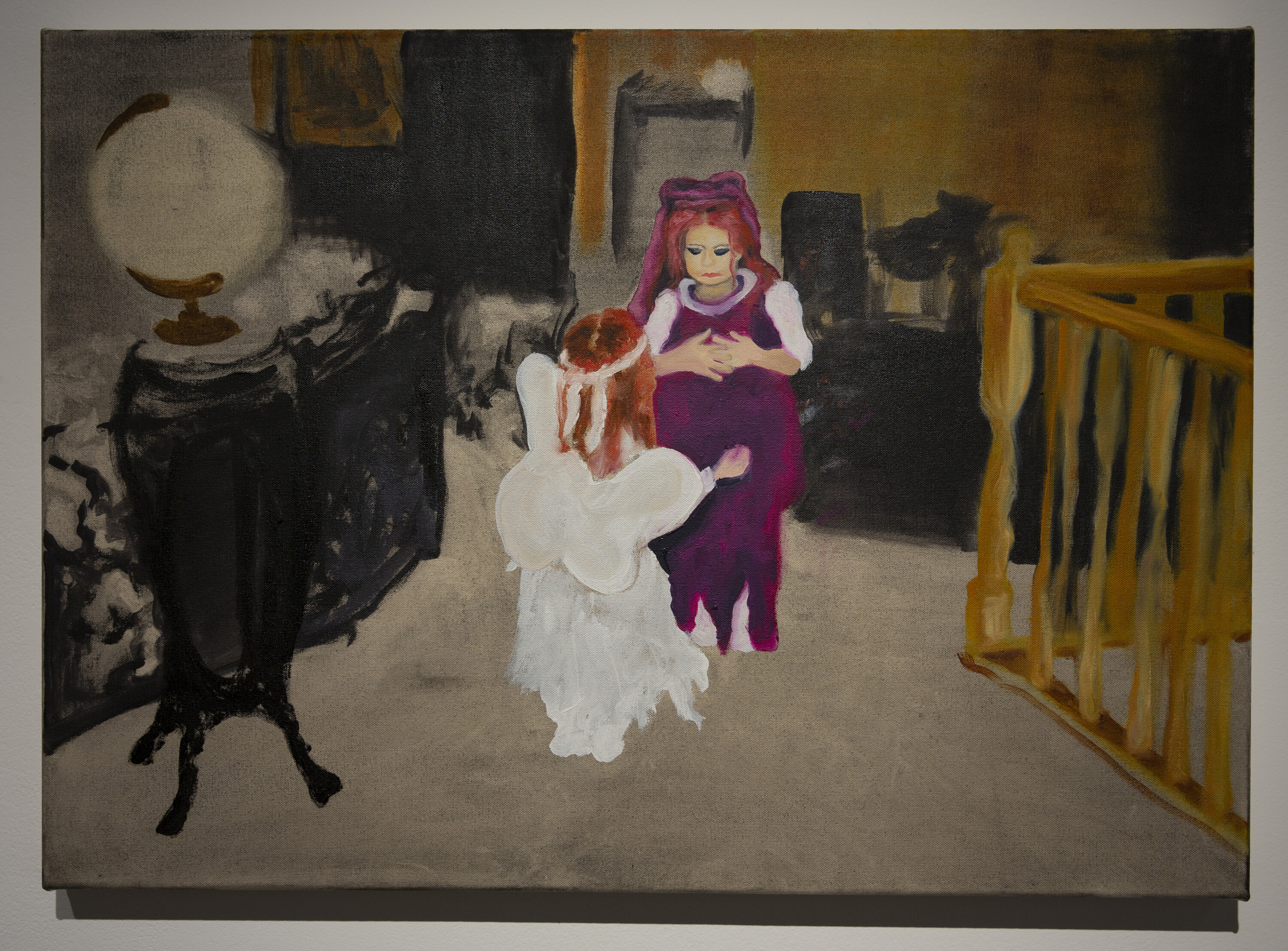 Idgie Kagan, Protecting (left to right), 2025, oil on canvas, 61 x 51 cm, RMIT Graduate Exhibition.