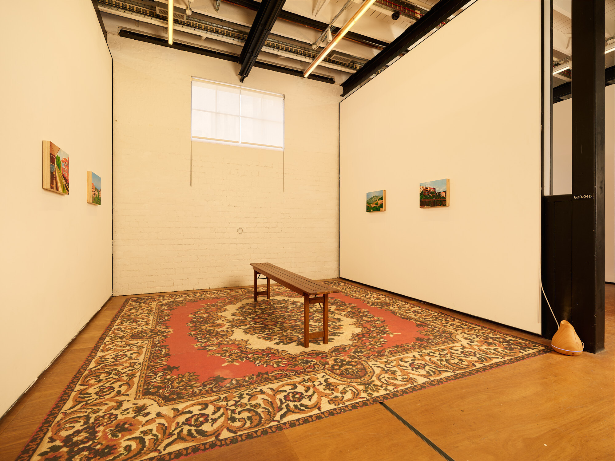 Installation view of Keiran Molaeb, Beyt Ahle (My Parents’ House) (1-4), 2025, acrylic on wood block, Victorian College of the Arts, Melbourne. Image courtesy of The University of Melbourne. Photograph credit: Christo Crocker.